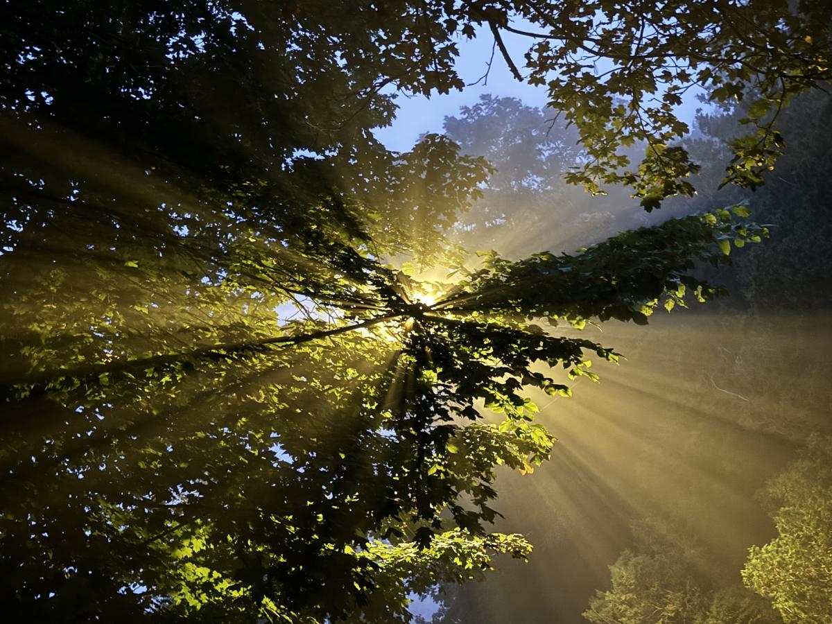 Pollen at sunrise in early summer seems to be plausible based on the first few google links, but I don’t know how to confirm. Very pretty either way!